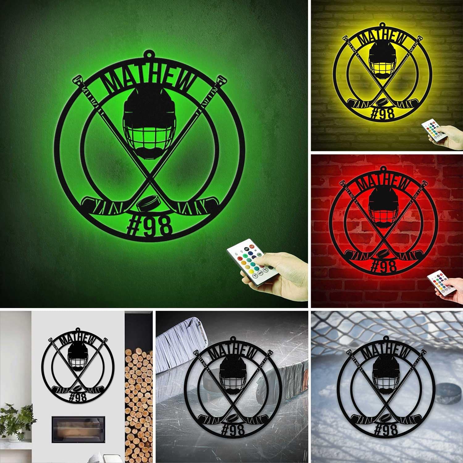 - [Easy Install Hockey Decor]: This custom light up sign includes pre-attached hooks for simple hanging. LED strips highlight the cutout hockey design, creating stylish metal art wall decor, hockey signs, and hockey decor. Great best gifts for hockey players, sports fans, and unique personalized sign gifts.