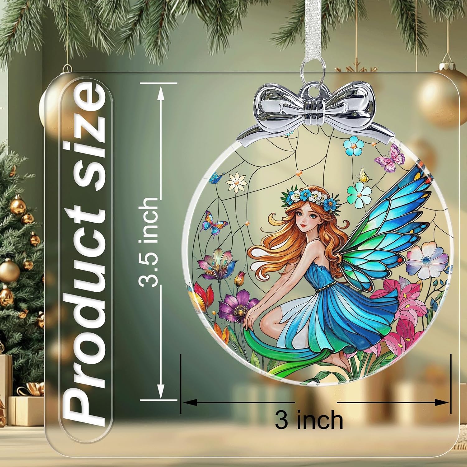 Butterfly Fairy Stained Glass Christmas Ornament - Hanging Ornaments for Christmas Tree Decorations -Holiday Keepsake Present Exchange Idea