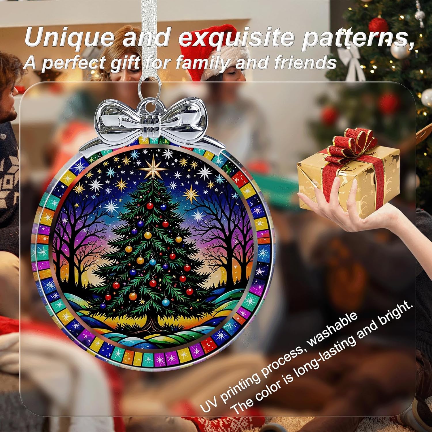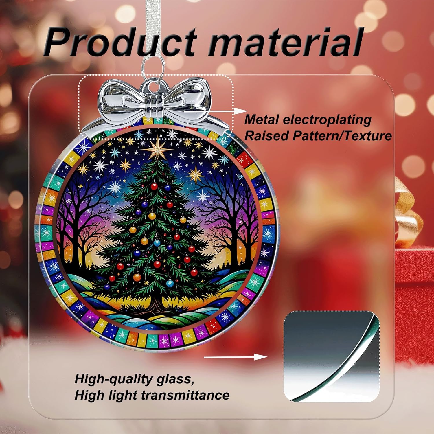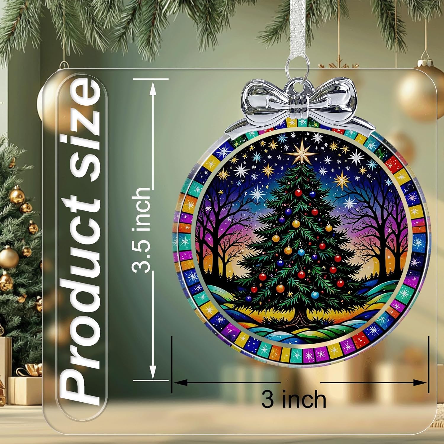 Starry Christmas Tree Stained Glass Christmas Ornament - Hanging Ornaments for Christmas Tree Decorations - Holiday Keepsake Present Exchange Idea