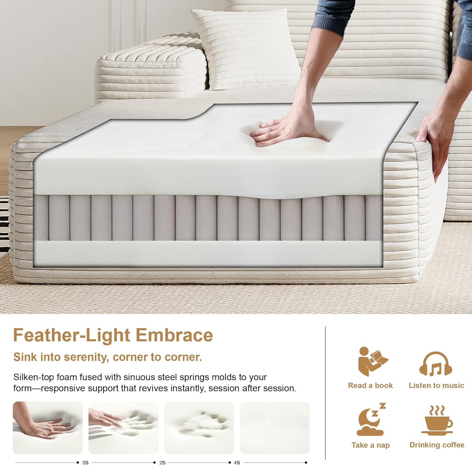 136" Sectional Couches for Living Room Modern Modular Sofa with L-Shape Couchs Upholstered Boneless Couch Deep Seat Sectional Couch with Chaise (White, Left Facing Chaise+3Seaters+Ottoman)