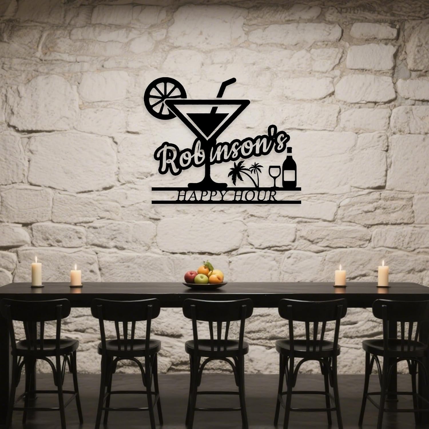 Happy Hour Metal Bar Sign - Personalized Wine Wall Art, Rustic Home Bar Decor, Custom Cocktail & Wine Themed Metal Signs for Indoor/Outdoor - MADE IN USA