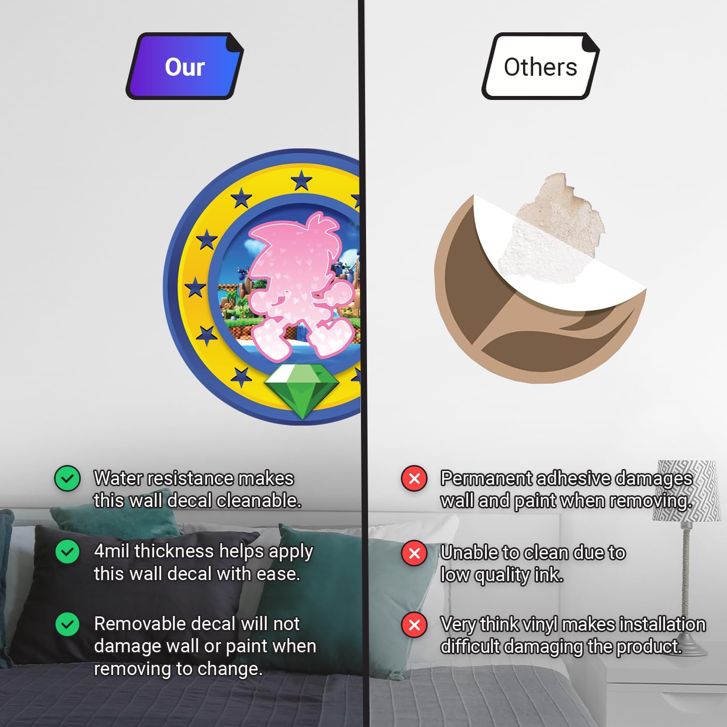 Speed Hero Wall Decal – Removable Vinyl Wall Art with Chaos Emerald Design – Gaming Room, Bedroom & Playroom Decor (Speed Hero)