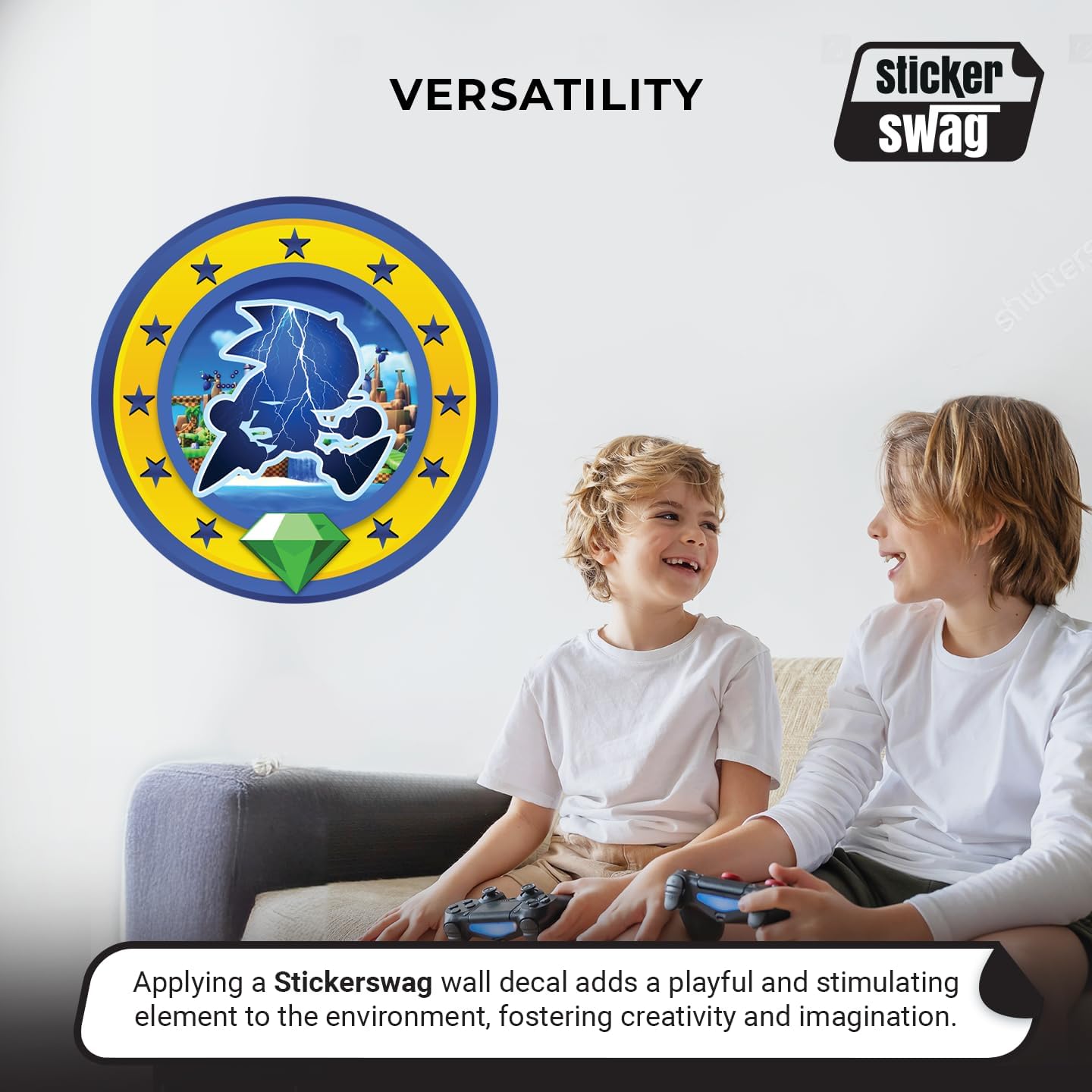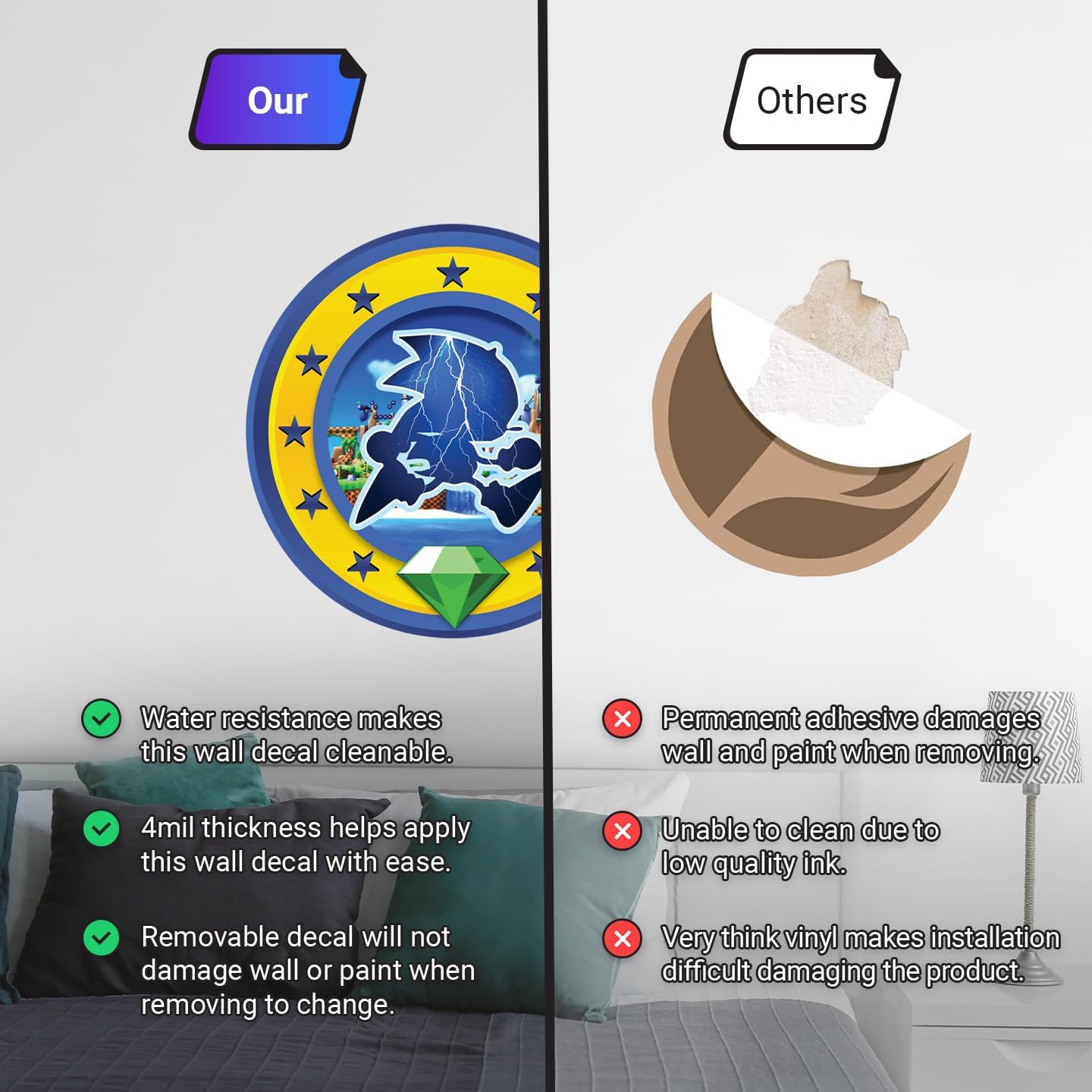 Speed Hero Wall Decal – Removable Vinyl Wall Art with Chaos Emerald Design – Gaming Room, Bedroom & Playroom Decor (Electric Hero)