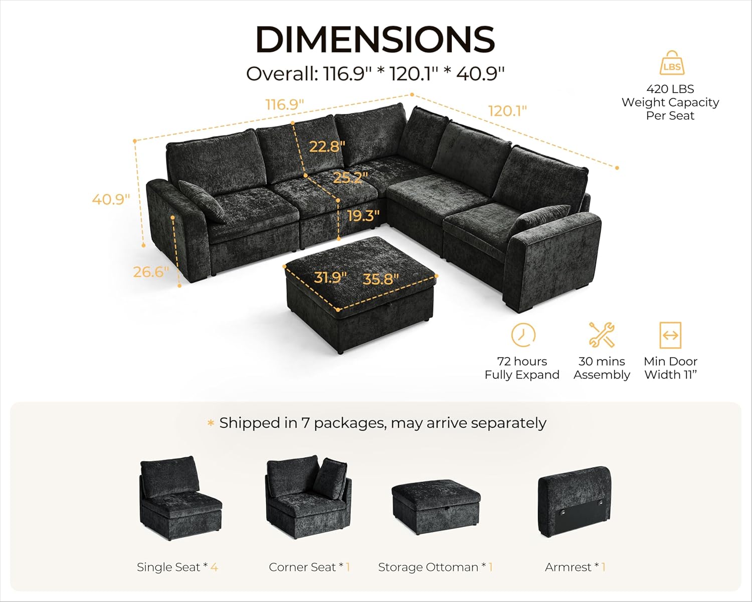 - 【Multiple Packages & Dedicated Support】 Your cloud modular sectional couch ships in 7 separate packages, which may arrive at different times. If you receive only some boxes, don’t worry—more are on the way! Need additional tracking details or assistance? We’re happy to help—just reach out! Our team is here to ensure you receive everything as expected and guarantee a smooth, hassle-free shopping experience with your complete satisfaction