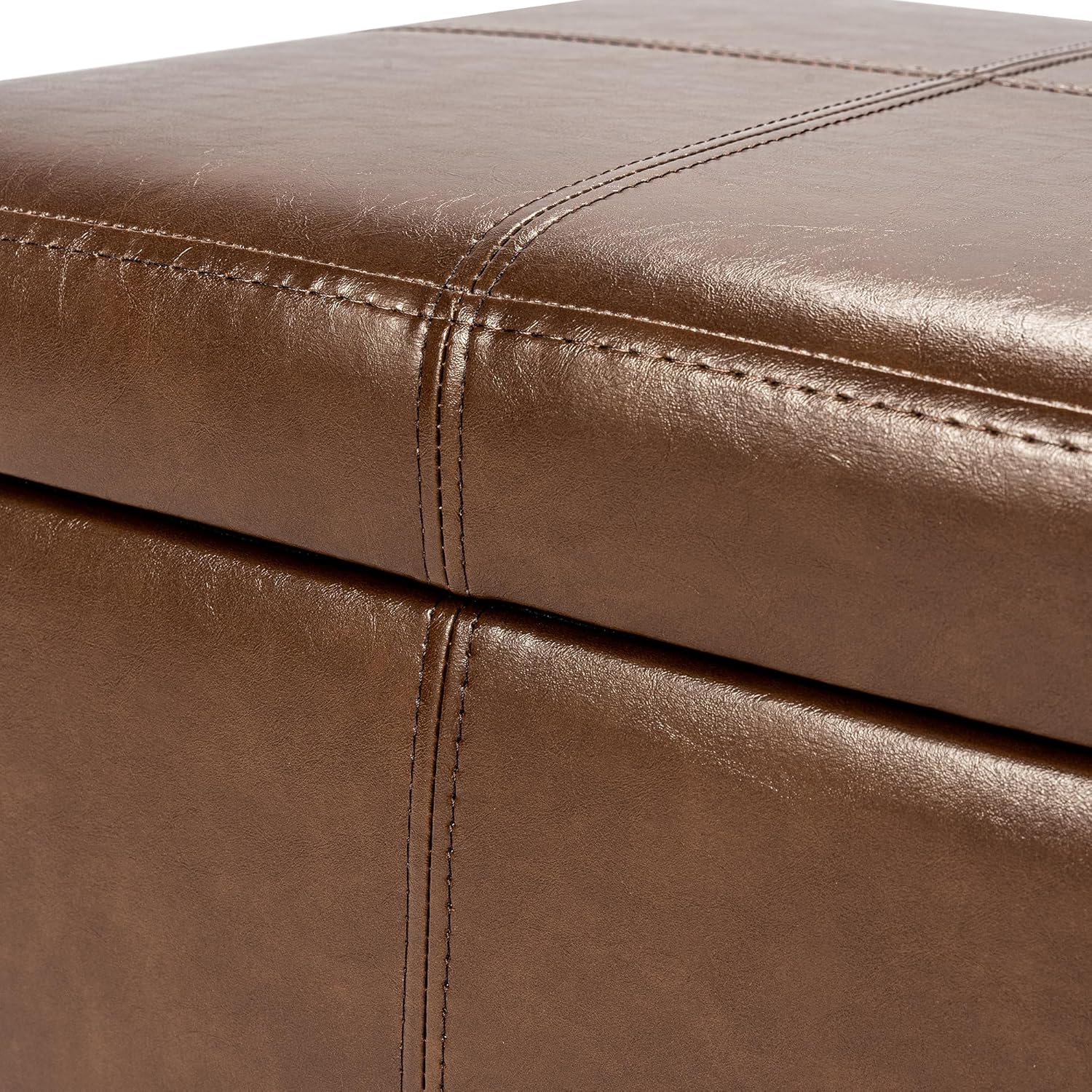 Adeco Storage Ottoman Foot Rest Stool, Leather Ottoman Footstool with Hinged Lid, 17" Small Foot Stool Bench for Living Room, Bedroom