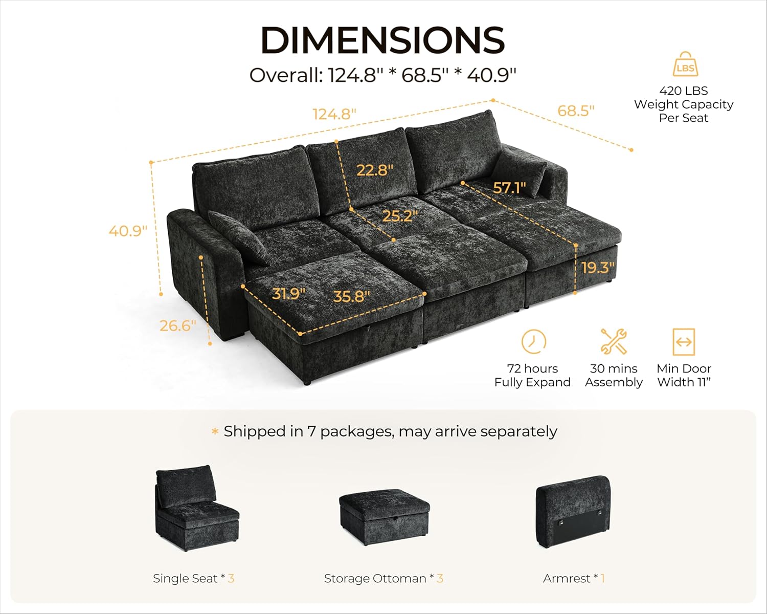 - 【Multiple Packages & Dedicated Support】 Your cloud modular sectional couch ships in 7 separate packages, which may arrive at different times. If you receive only some boxes, don’t worry—more are on the way! Need additional tracking details or assistance? We’re happy to help—just reach out! Our team is here to ensure you receive everything as expected and guarantee a smooth, hassle-free shopping experience with your complete satisfaction