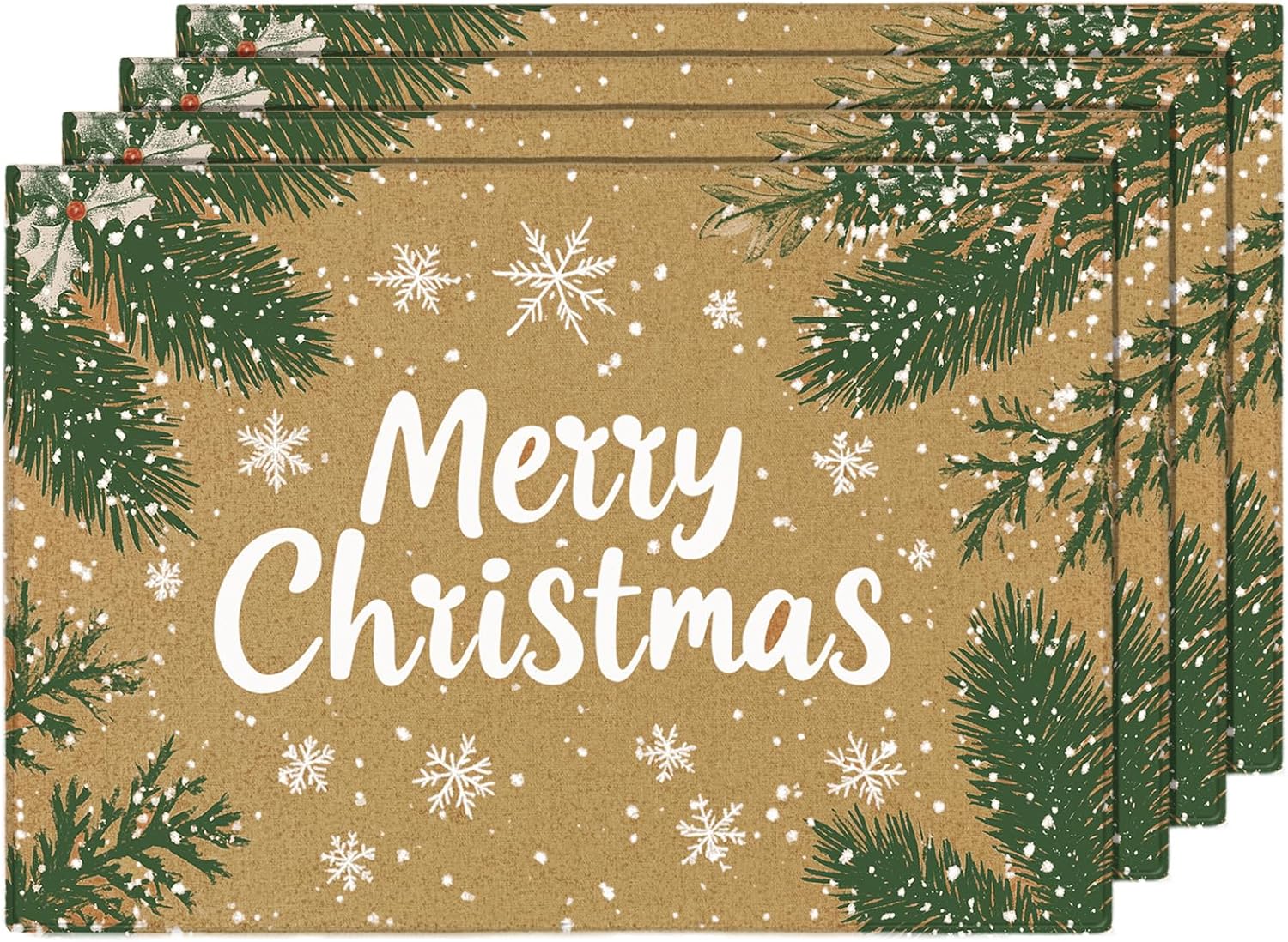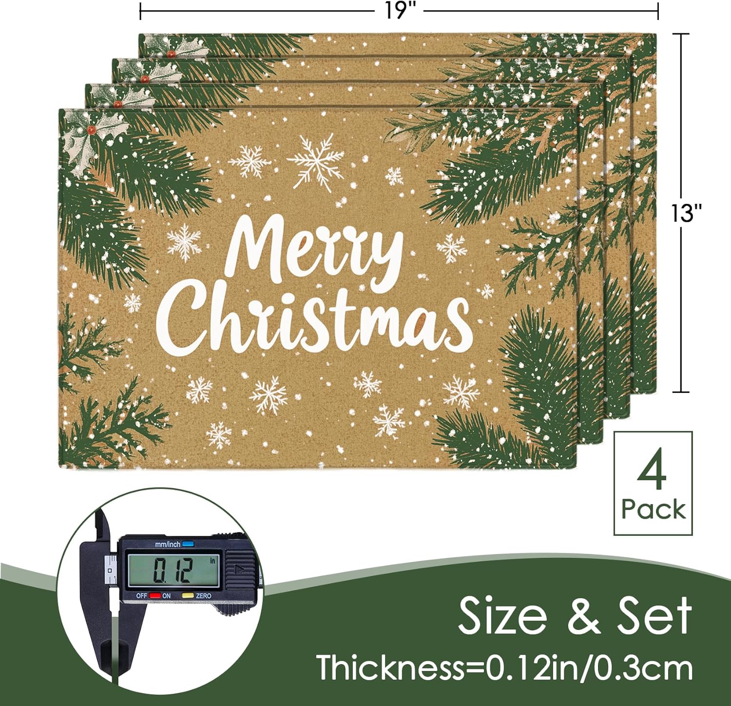 - Perfect Size & Versatility: You will get Christmas placemats set of 4, 13x19 inch, large size table placecmats enough for dinner plates and utensils, ideal for indoor or outdoor dining, from casual meals to festive gatherings