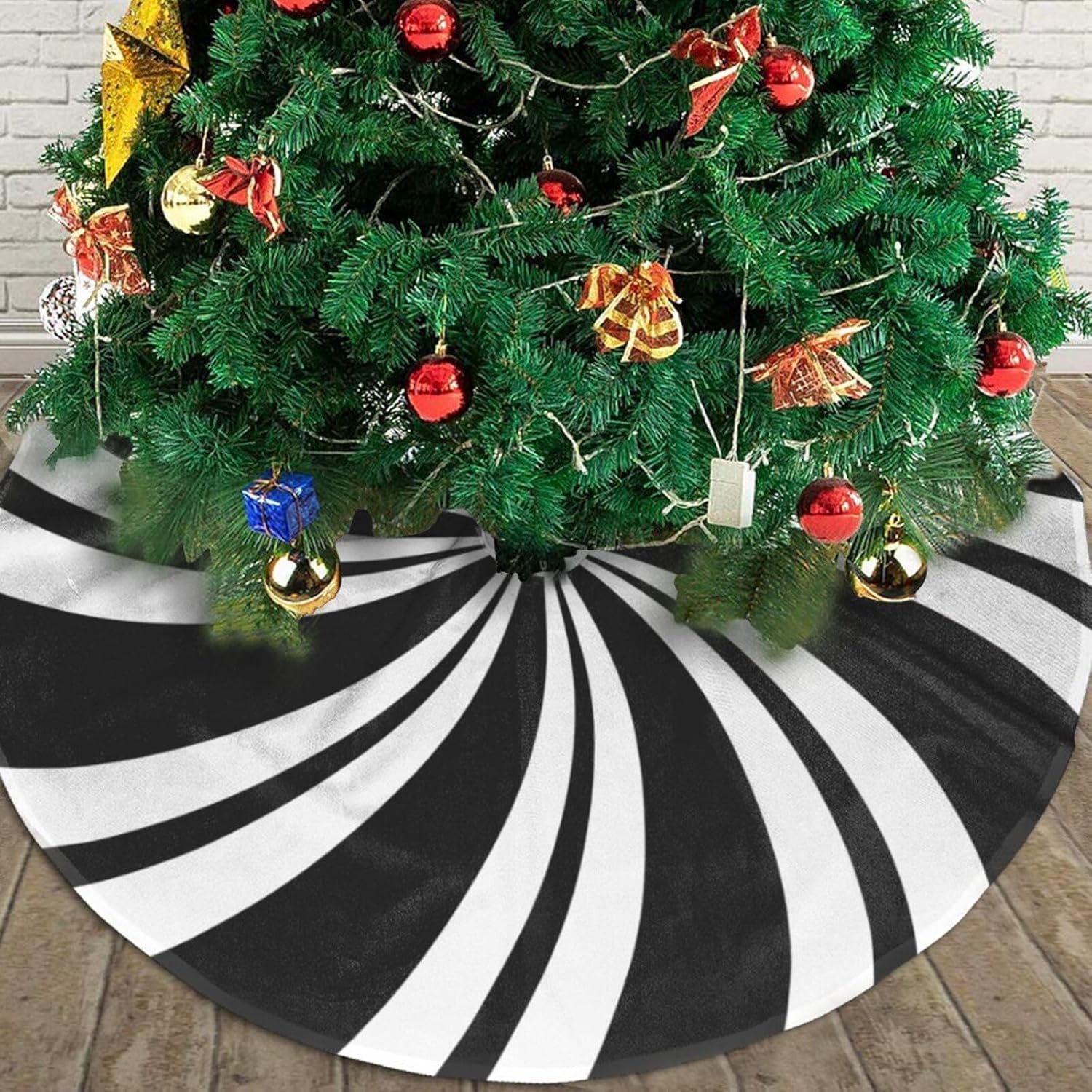 Christmas Tree Skirt,Mint Sugar Double Swirl Candy Black Xmas Tree Skirt Rustic Farmhouse Tree Skirt for Christmas Decor Xmas Holiday Home Party Decorations36