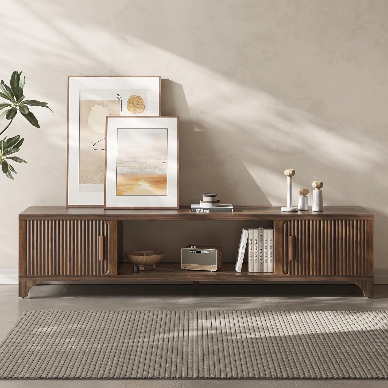 Mid Century Modern TV Stand for 55/65 Inches Television Console with Fluted Doors and Storage Entertainment Center for Living Room and Bedroom Dark Brown