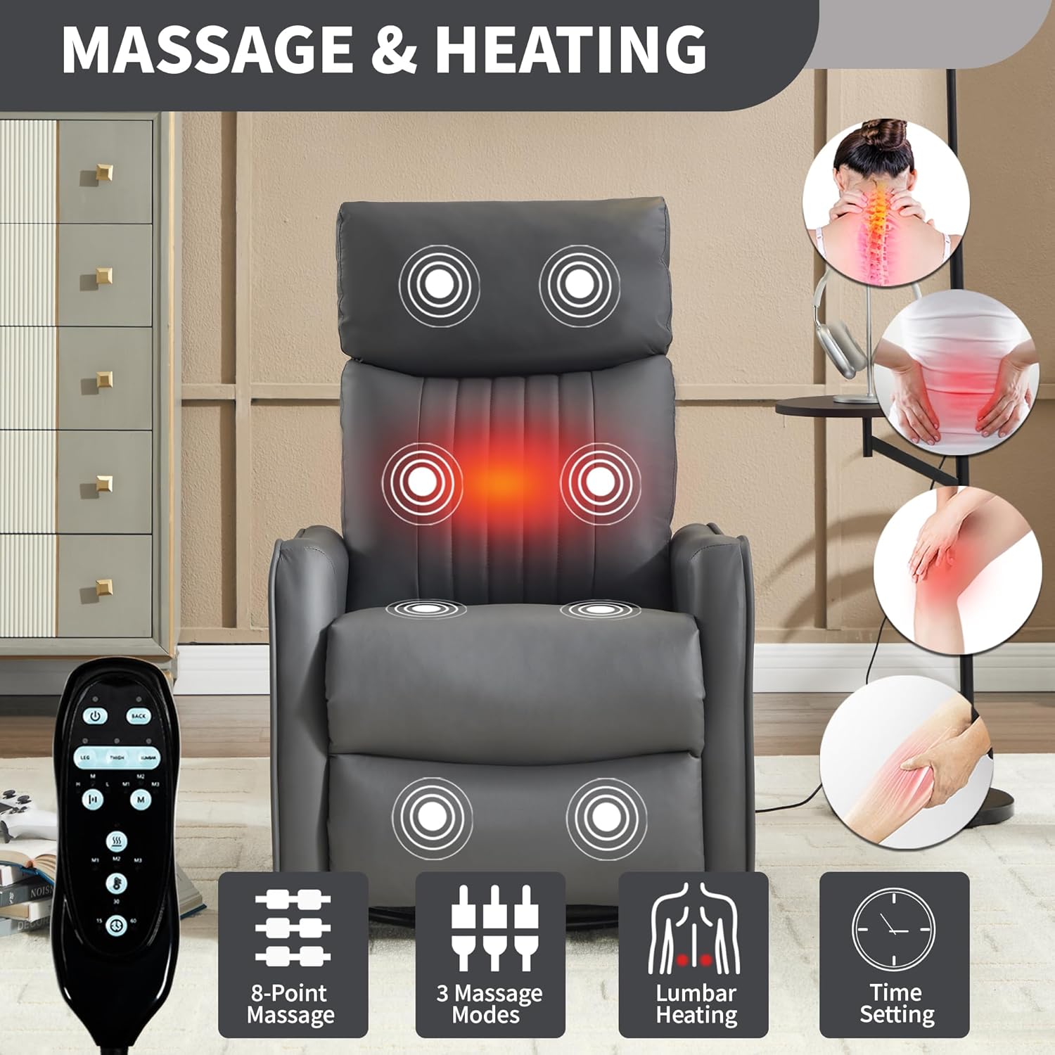 - [Premium Relaxation, Exceptional Value] Discover the perfect blend of features – swivel, rocker, recliner, glider, and massage – in one affordable recliner. An ideal glider recliner for your living room sanctuary.