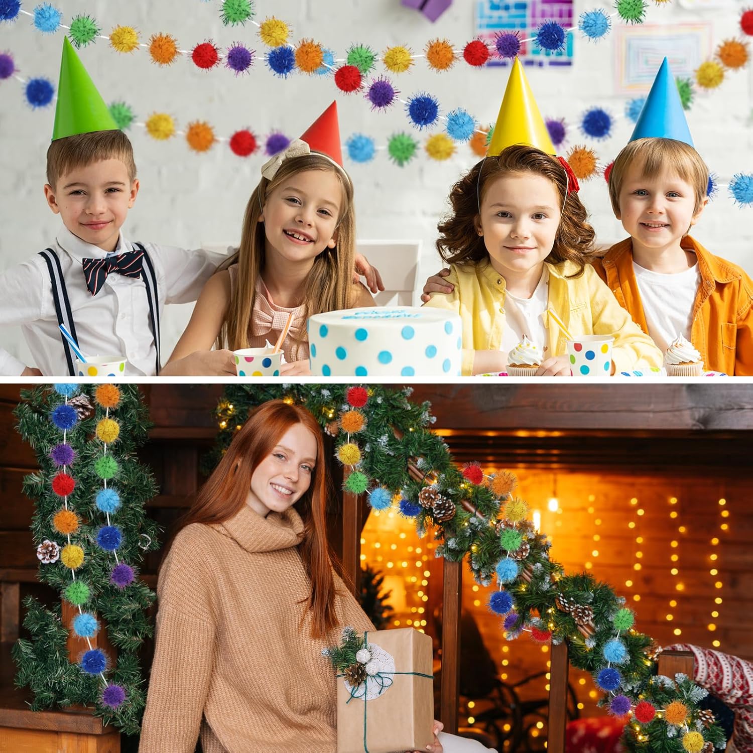 - Multi-Purpose: Our glitter pom pom garland is perfect for Easter, Thanksgiving, Christmas, spring, Mardi Gras, and other festive occasions, ideal for mantle, walls, home, classroom, play room, offices and parties. Designed for year-round versatility, these felt garlands work indoors and out!