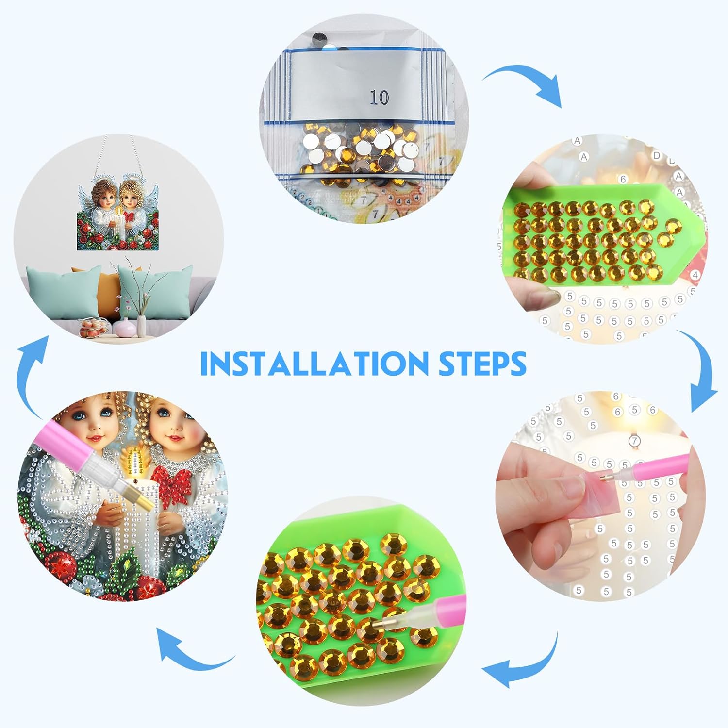 - What You’ll Receive: Includes numbered acrylic hanging plate x1, iron chain x1, diamond pen x1, tray x1, wax pad x1, plenty of diamonds, and a beautiful box—everything you need to start your diamond art project