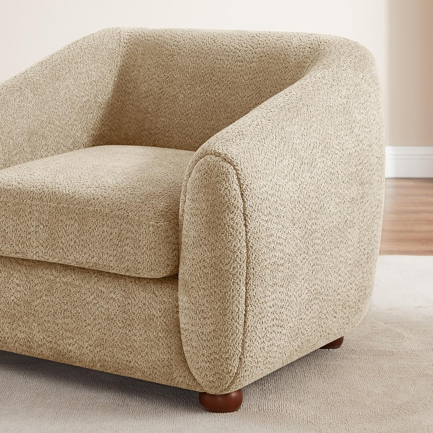 Modern Accent Chair for Living Room, Upholstered Armchair with Linen Fabric, Single Sofa Chair with Solid Wood Legs, Boucle, Camel