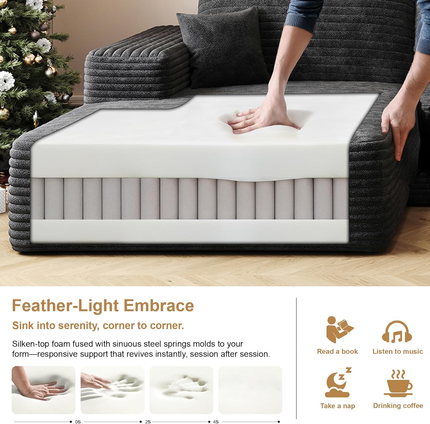 136" Sectional Couches for Living Room Modern Modular Sofa with L-Shape Couchs Upholstered Boneless Couch Deep Seat Sectional Couch with Chaise (Black, Left Facing Chaise+3Seaters+Ottoman)
