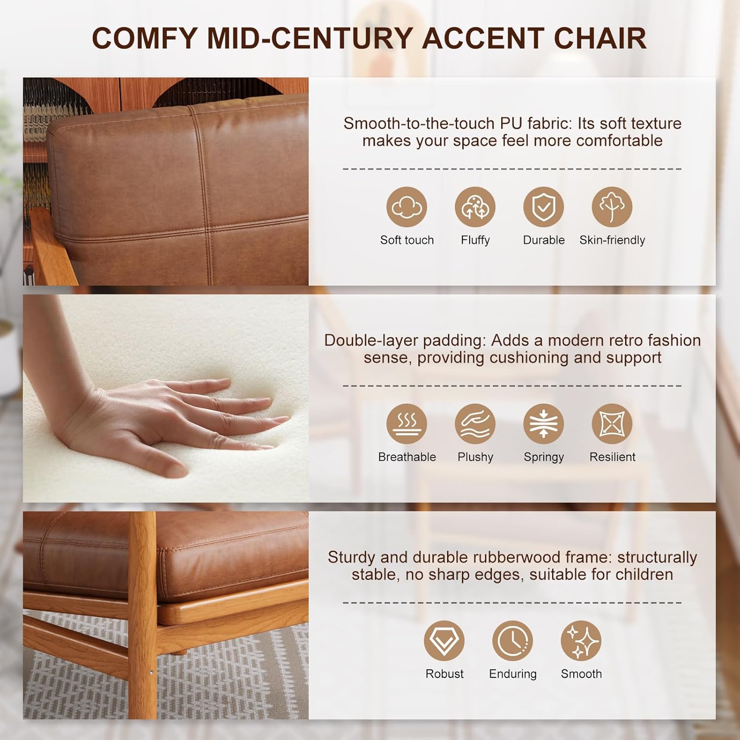 - 【Sturdy Luxurious Seating Option】This living room chairs boasts a solid wood frame, paired with soft faux leather upholstery, durable foam padding, and heavy-duty springs—delivering exceptional support and long-lasting comfort. It arrives in vacuum packaging and bounces back to its original shape instantly once unpacked, with no sagging or flattening over time. Perfect as a reading chair for adults or a bedroom chair, it’s ideal for any cozy corner.