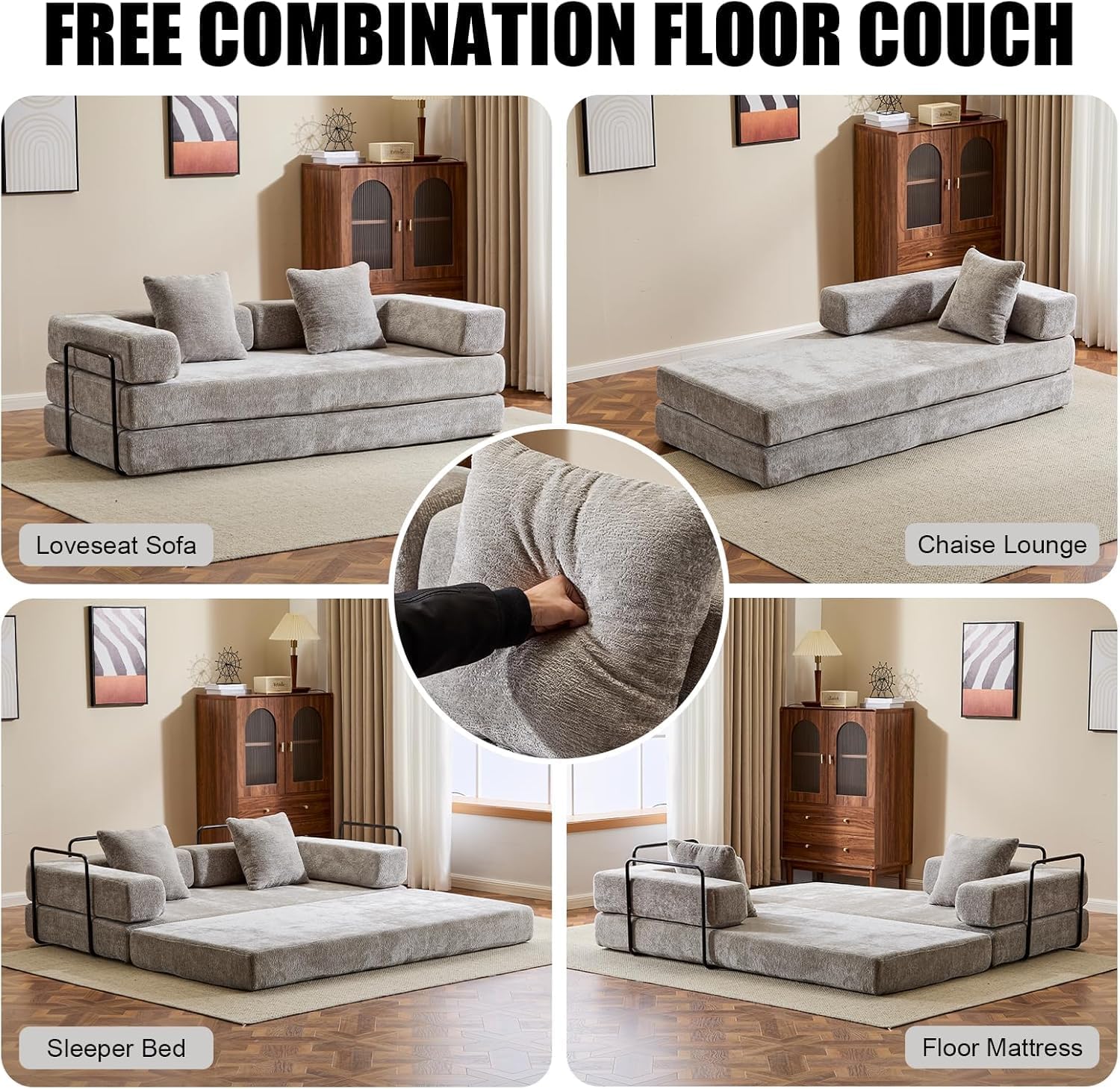 - 【Flexible Compression Sofa Design – Create Your Own Sofa Bed】This free combination modular sofa bed features a foldable base and removable backrests, allowing you to DIY the shape based on your space and needs. Easily transform it into a spacious double couch bed or separate lounge seats. Lightweight and easy to move, perfect for modern, adaptable living.