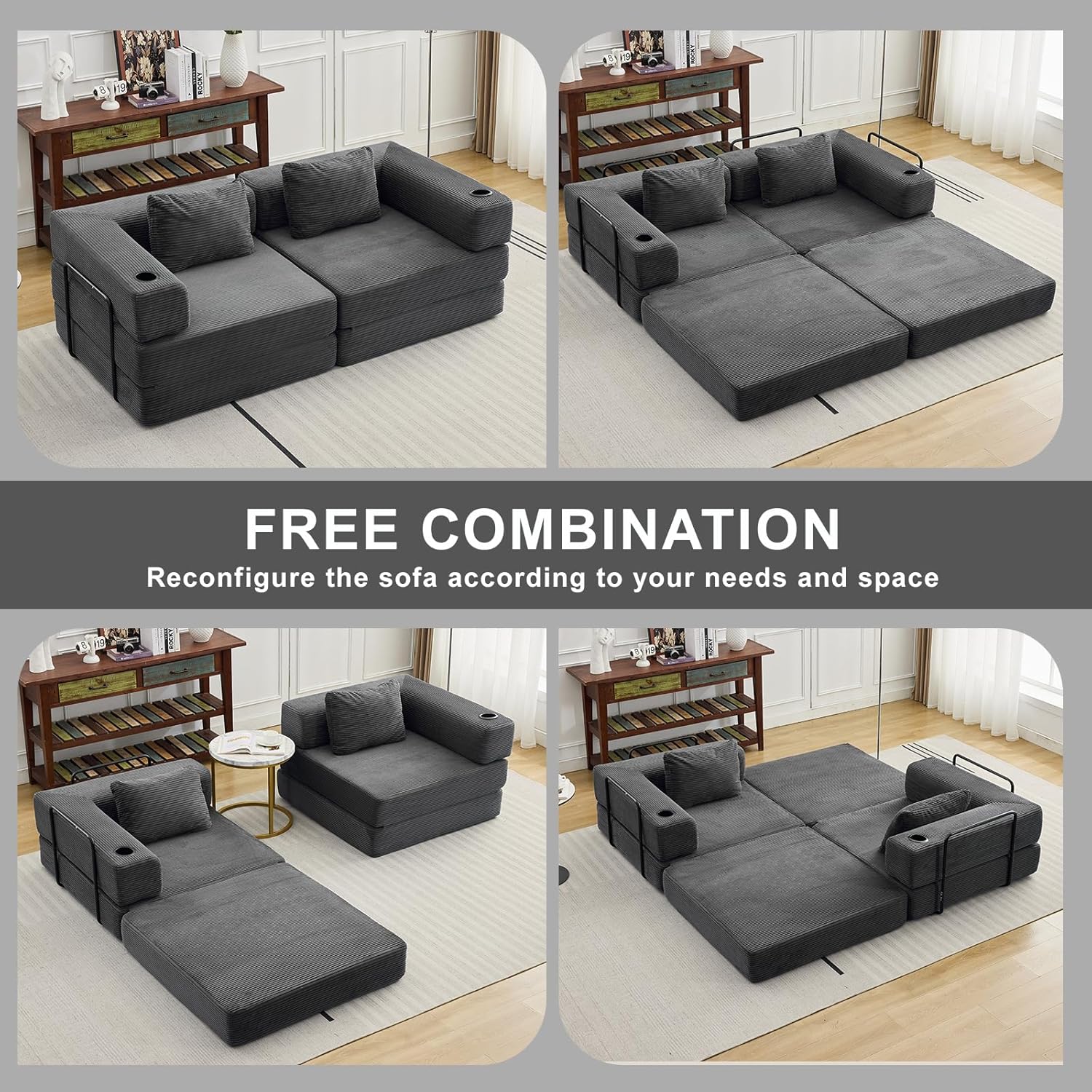 - 【Comfortable & Soft Convertible Sectional Sofa】This free combination modular sofa bed, allowing you to DIY the shape based on your space and needs. Easily transform it into a spacious double couch bed or separate sofa. Lightweight and easy to move, perfect for modern, adaptable living.
