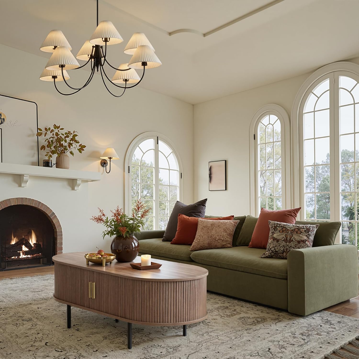 - [Easy-to-Clean Surface & Safer Curves] This fluted oval coffee table has a smooth, scratch-resistant wood surface that is easy to clean. Whether you're savoring a meal or doing crafts it cleans up effortlessly with a single wipe. The oval design reduces the risk of knocks and increases safety. As a modern minimalist coffee table, it has the everyday practicality that will add endless fun to your life