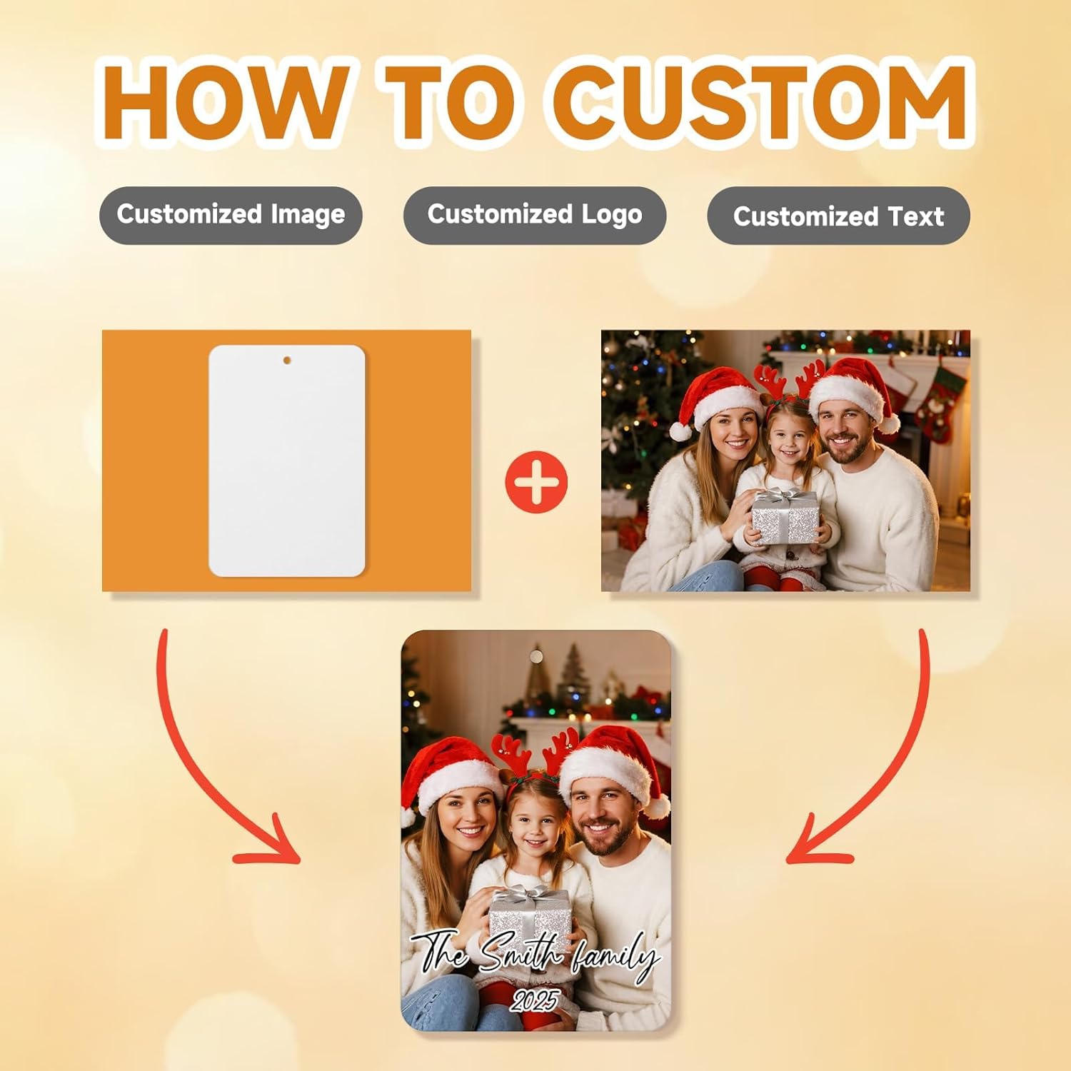 - 【CUSTOMIZED CHRISTMAS ORNAMENT 2025】Click "Customize Now" to start personalize your own fragrance ornament special with desired photo, words, text, logo, image, saying, number, name etc. You can customize several ornaments to send to all your loved ones. Imagine how surprised they will be when they receive the personalized gifts