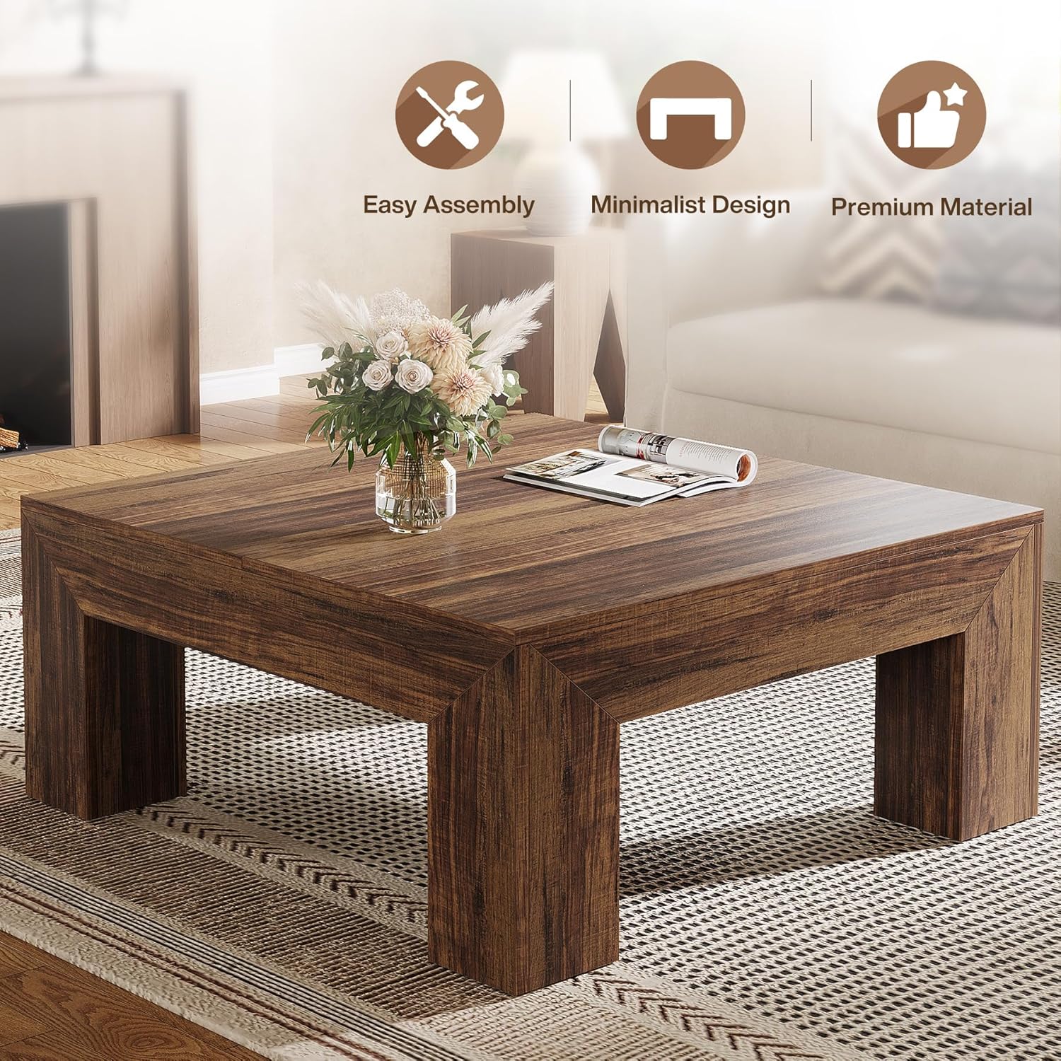 Tribesigns 39.4-Inch Square Coffee Table for Living Room, Farmhouse All MDF Accent Center Cocktail Table with Sturdy Wooden Legs, Easy Assembly, Dark Brown