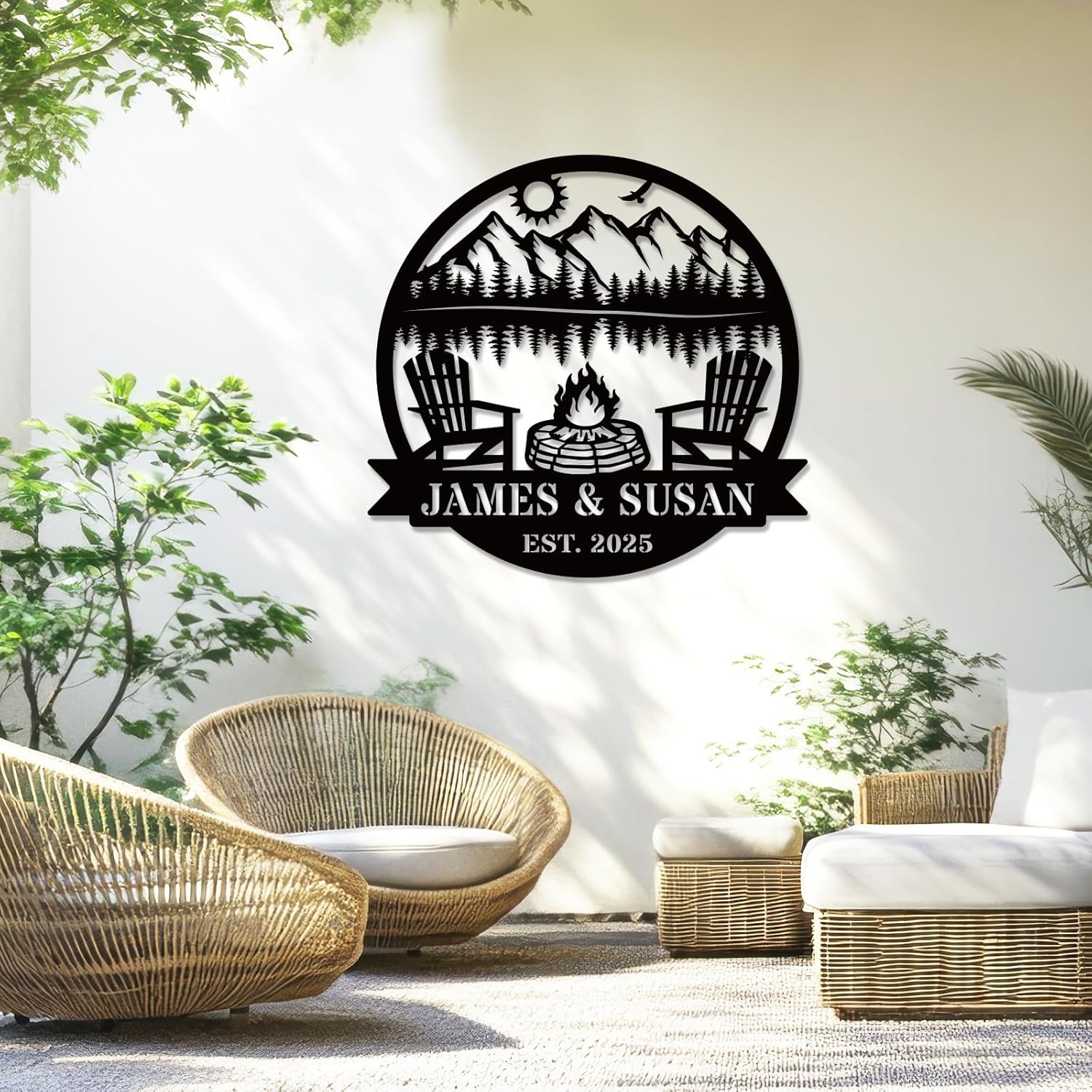 - Custom Outdoor Campfire Metal Sign: Crafted from premium steel with detailed mountain and tree designs, this custom outdoor campfire metal sign adds a unique touch to cabins, patios, and gardens, making it a lasting piece of rustic metal wall decor for any outdoor retreat.